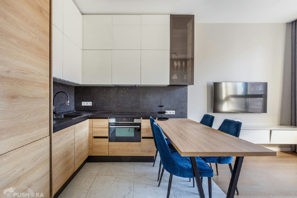 Кухня-гостинная площадь 17,8 кв м . Встроенная мебель и техника остаются для нового собственника.