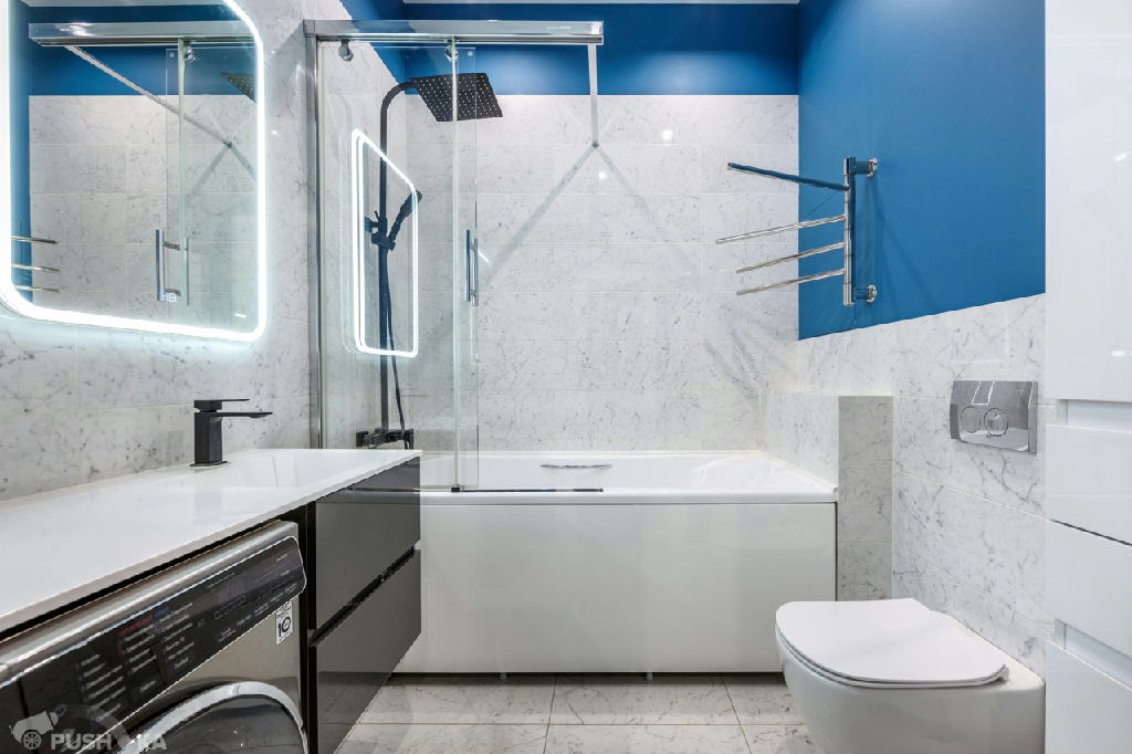 Совмещённый санузел оборудован современной сантехникой