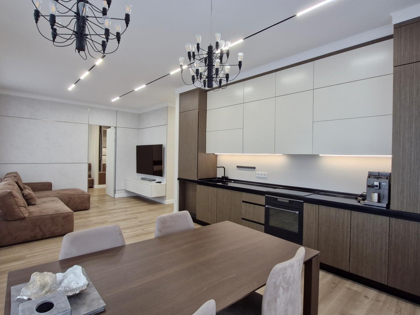 Квартира восхищает своим стилем и элегантностью. В отделке использованы приглушенные природные оттенки, эргономичный дизайн идеально дополнен качественными и современными материалами. Просторная и функциональная планировка, комфортная мебель и вся необходимая техника - здесь вы найдете все удобства, чтобы создать свой идеальный уголок.