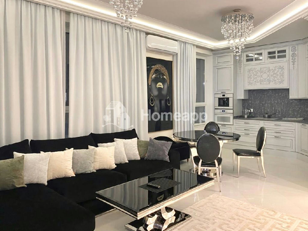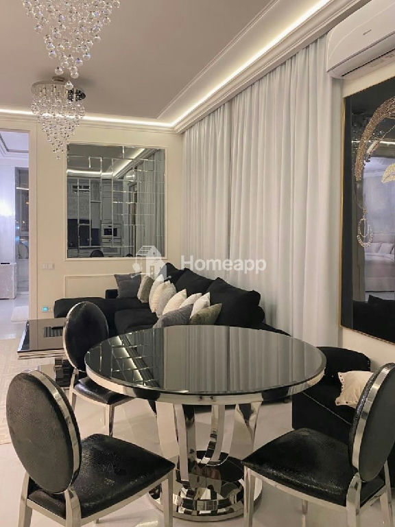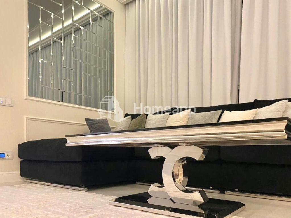 В апартаментах мраморные полы, многоуровневый потолок, дизайнерская мебель и предметы интерьера. Техника привезена на заказ из Европы, таких производителей сейчас нет в России. Сделана шумоизоляция пола и потолка. Заменены окна и радиаторы от застройщика. Система кондиционирования установлена в каждой комнате, а также имеется приточно-вытяжная система вентиляции.